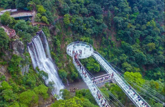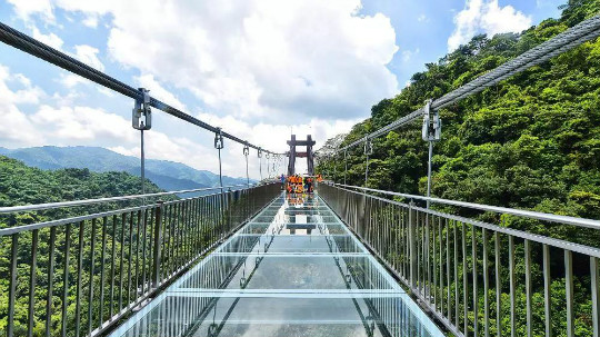 没有参加漂流的小伙伴们,选择了另一个挑战项目:“南天玻霸”高空玻璃桥。