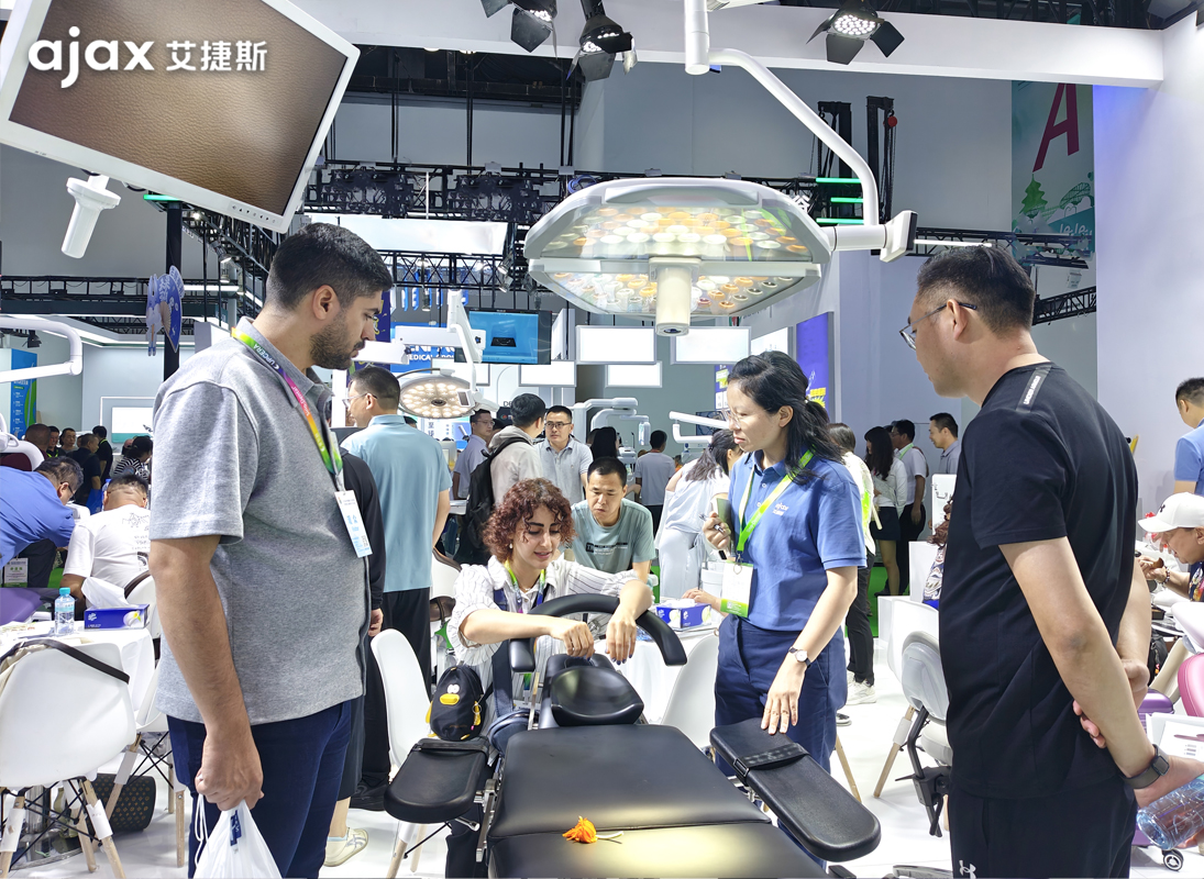 为期四天的展程中,艾捷斯展台始终人流如织。艾捷斯牙椅不仅在设计上充分考虑了患者的舒适度和医生的操作便利性,还融入了多项数智化技术,助力提升口腔诊疗的舒适性与高效性,牙椅精湛的工艺和卓越的性能吸引众多观众驻足体验。