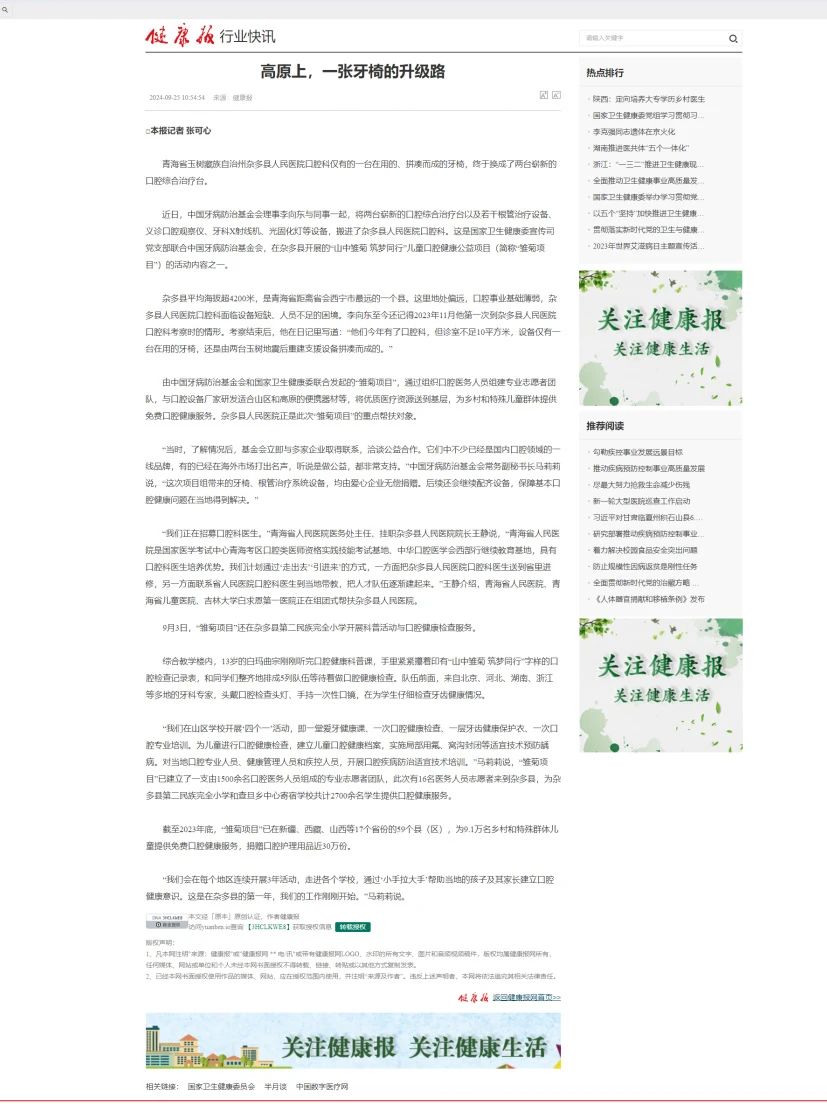 在本次展会期间,艾捷斯作为爱心捐赠单位,参加了“山中雏菊”公益伙伴授牌仪式。作为民族企业,艾捷斯一直怀抱爱心,积极践行社会责任,参与各类公益事业。“雏菊项目”便是其中之一。正如健康报《高原上,一张牙椅的升级路》所记录的:杂多县地处偏远,曾是口腔医疗的“孤岛”。当中国牙病防治基金会联合国家卫健委发起号召,艾捷斯第一时间响应,将崭新牙椅送往雪域高原。如今,在青海省玉树藏族自治州杂多县人民医院,艾捷斯捐赠的牙椅已经为众多孩子送去了健康笑容。这份跨越千山万水的健康守护,正是艾捷斯的公益初心。