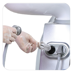 | 有效防止通过手机回吸引起的手机管道内部感染,而最终造成患者间的交叉感染。 | 强弱吸可延时5秒关闭,以确保强弱吸管道内唾液被完全排空。 |