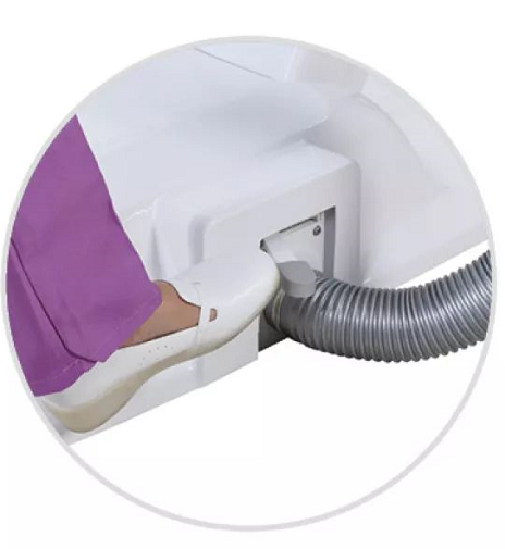 | 运用人体工程学设计,使牙椅与人体无比协调, 使患者在治疗过程中没有被推拉的不适感。 | 超低进入位设计,方便儿童或老年患者上下牙椅。 |